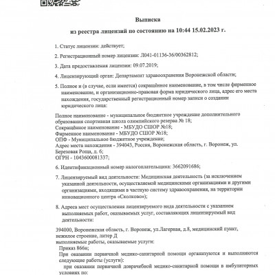 Медицинская помощь спортсменам предоставляется в соответствии с лицензией на медицинскую деятельность